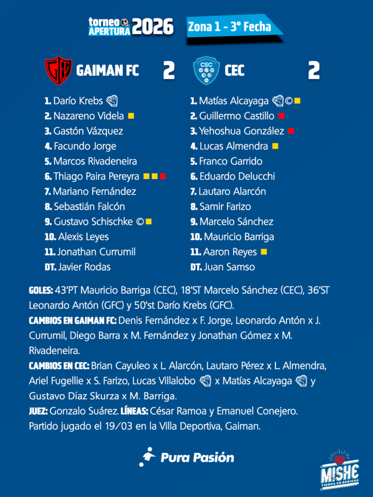 Pura Pasión Síntesis de la fecha 3 Mirá las síntesis de los siete juegos de la tercera fecha del Torneo Apertura 2026 de la Liga del Valle. Hacé click sobre la síntesis, mirala en formato original y descargala. Temas relacionados: Click para comentar Deja una respuesta Cancelar respuestaTu dirección de correo electrónico no será publicada. Los campos obligatorios están marcados con *Comentario * Nombre * Correo electrónico * Web